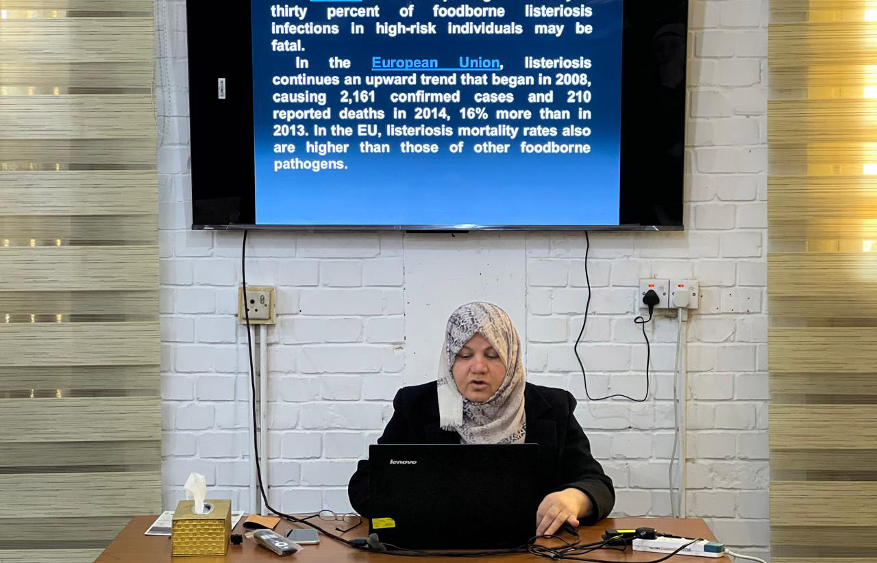 اقام فرع الاحياء المجهرية بالتعاون مع وحدة التعليم المستمر ندوة علمية بعنوان اللستيريا المستوحدة حاضر فيها المدرس سفانة عبد الستار ياسين هدفت الندوة الى تعريف الحضور ببكتريا اللستريا تعد جراثيم Listeria monocytogenes المسببة لمرض Listeriosis بكتيريا انتهازيه مشتركة وخطره على صحة الانسان والحيوان مسببه وفيات ولا سيما في الاشخاص الاكثرعرضه للإصابة وهم النساء الحوامل وحديثوا الولادة والمسنين والاشخاص ذو المناعة الضعيفة او غير السوية . ان جراثيم L. monocytogenesممرضة لمدى واسع من الحيوانات في الطبيعة حيث أمكن عزلها من أكثر من خمسين نوعاً من الحيوانات الداجنة والبرية بضمنها الطيور وتلعب المجترات وخصوصا الاغنام والابقار والماعز دورا مهما للمحافظة على بقاء الجرثومة في الطبيعة عن طريق التربة والعلف الملوث لاسيما السايلج ذي النوعية الرديئة والفضلات الملوثة, ويمكن أن يحدث مرض اللستيريوسز في الحيوانات بشكل متقطع أو بشكل وبائي و غالبا ما يؤدي إلى الشكل القاتل من التهاب الدماغ وهناك عدة اشكال سريرية لمرضListeriosis وتم التطرق الى اهم طرق العدوى لجرثومة اللستيريا المستوحدة المنقولة بالغذاء حيث تعد بكتيريا اللستيريا المستوحدة Listeria monocytogenes من اهم المكروبات التي تنتقل عن طريق استهلاك المنتوجات الغذائية الملوثة . وهي البكتيريا المسؤولة عن مرض listerioses او ما يعرف بمرض الدوران حيث يشكل خطرا كبيرا على الصحة العامة للانسان والحيوان على حد سواء. ونظرا لاهمية الاصابة بهذه البكتيريا خاصة في النساء الحوامل والتي ممكن ان تسسبب لهن الاجهاض المبكر و كذلك الاطفال الرضع الذين قد يتعرضون لهذه الجرثومة مسببة لهم التهاب السحايا , لذا ينصح بعدم تناول هذه الفئة من الناس الاغذية المصنعة من قبل ايدي عاملة دون رقابة ويكون المنتوج غير خاضع للسيطرة النوعية. كما تم التحدث عن امراضية الجرثومة وعن اهم اعراض الاصابة بالمرض وطرق التشخيص والعلاج اضافة الى ذلك تم شرح طرق السيطرة على هذا وكيفية الوقاية
