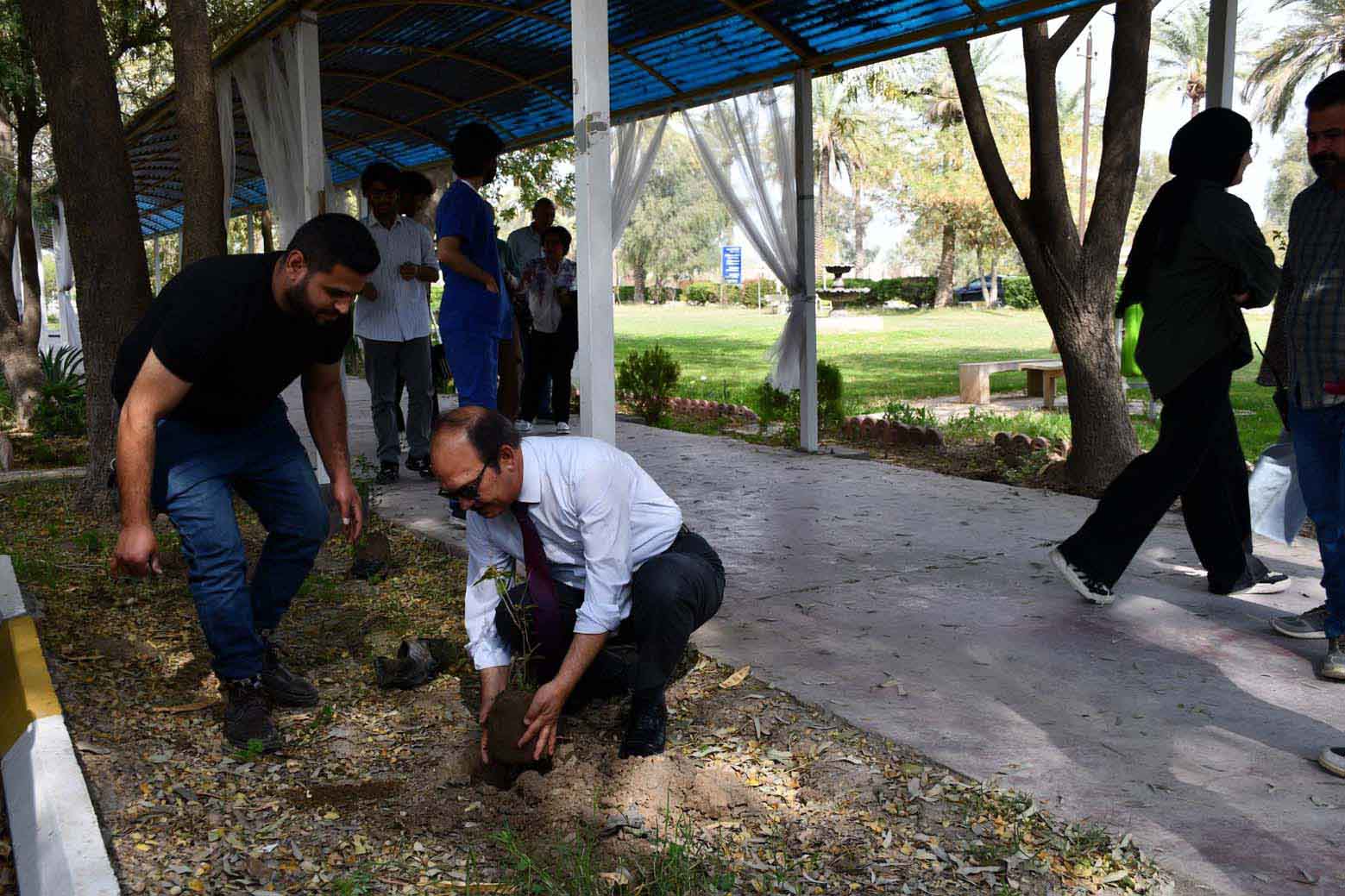 كلية الطب البيطري / جامعة بغداد تطلق حملتها الثانية للتشجير : في اطارمبادرة رئيس الوزراء لزراعة مليون شجرة و لتعزيز الوعي البيئي والمساهمة في زيادة المساحات الخضراء نظمت صباح اليوم كلية الطب البيطري / جامعة بغداد وباشراف معاون العميد للشؤون العلمية الاستاذ الدكتور احمد حميد فتح الله حملة تشجير واسعة بمشاركة اعضاء الهيئة التدريسية والطلبة تاتي هذه المبادرة تماشيا مع الاهداف الوطنية لتعزيز الاستدامة البيئية ومكافحة التصحر وشملت الحملة زراعة عدد كبير من الاشجار والنباتات