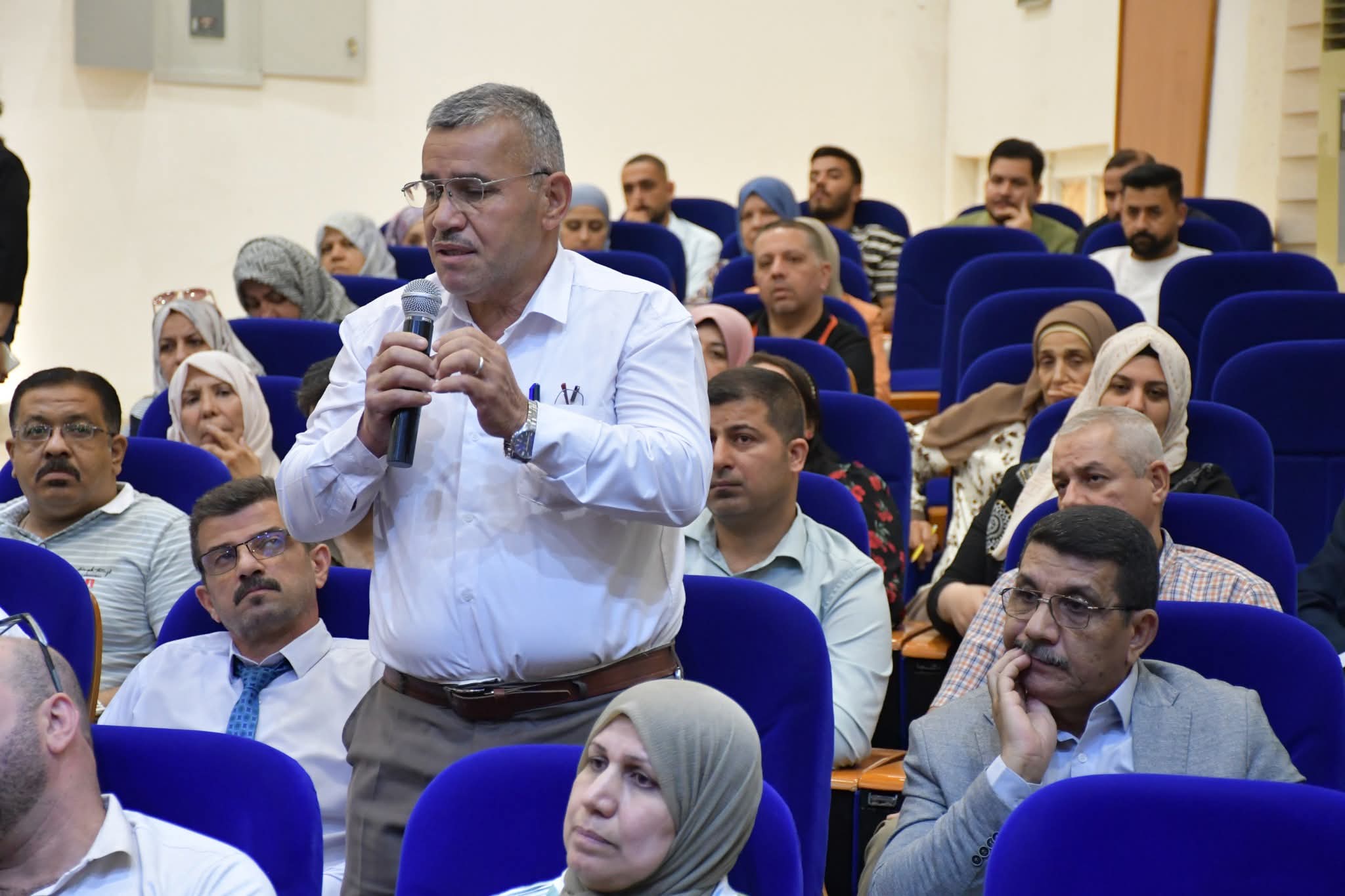 ضمن حرص عمادة كلية الطب البيطري على دعم طلبة الدراسات العليا وتذليل العقبات التي تواجههم في مسيرتهم العلمية، عقد السيد عميد الكلية الاستاذ الدكتور حميد علي كاظم لقاءً موسعاً مع طلبة الدراسات العليا وبحضور كل من الاستاذ الدكتورة عروبة محمد سعيد معاون العميد للشؤون العلمية والطلبة والاستاذ الدكتور محمد ثابت معاون العميد للشؤون الادارية ورؤساء الفروع العلمية . واستمع السيد العميد خلال اللقاء إلى ملاحظات ومقترحات الطلبة المتعلقة بمراحل البحث الدراسة، مؤكداً حرص الكلية على توفير بيئة أكاديمية ملائمة تسهم في إنجاز البحوث العلمية الرصينة التي تخدم المجتمع والقطاع البيطري. كما وجّه العميد بضرورة الالتزام بالضوابط والتعليمات الخاصة بالدراسات العليا، مشيداً بالجهود التي يبذلها الأساتذة والمشرفون في متابعة طلبتهم، ومؤكداً أن أبواب العمادة مفتوحة أمام الجميع لمعالجة أي معوقات قد تواجههم. وفي ختام اللقاء، عبّر الطلبة عن شكرهم لعمادة الكلية على اهتمامها ودعمها المستمر لمسيرتهم العلمية .