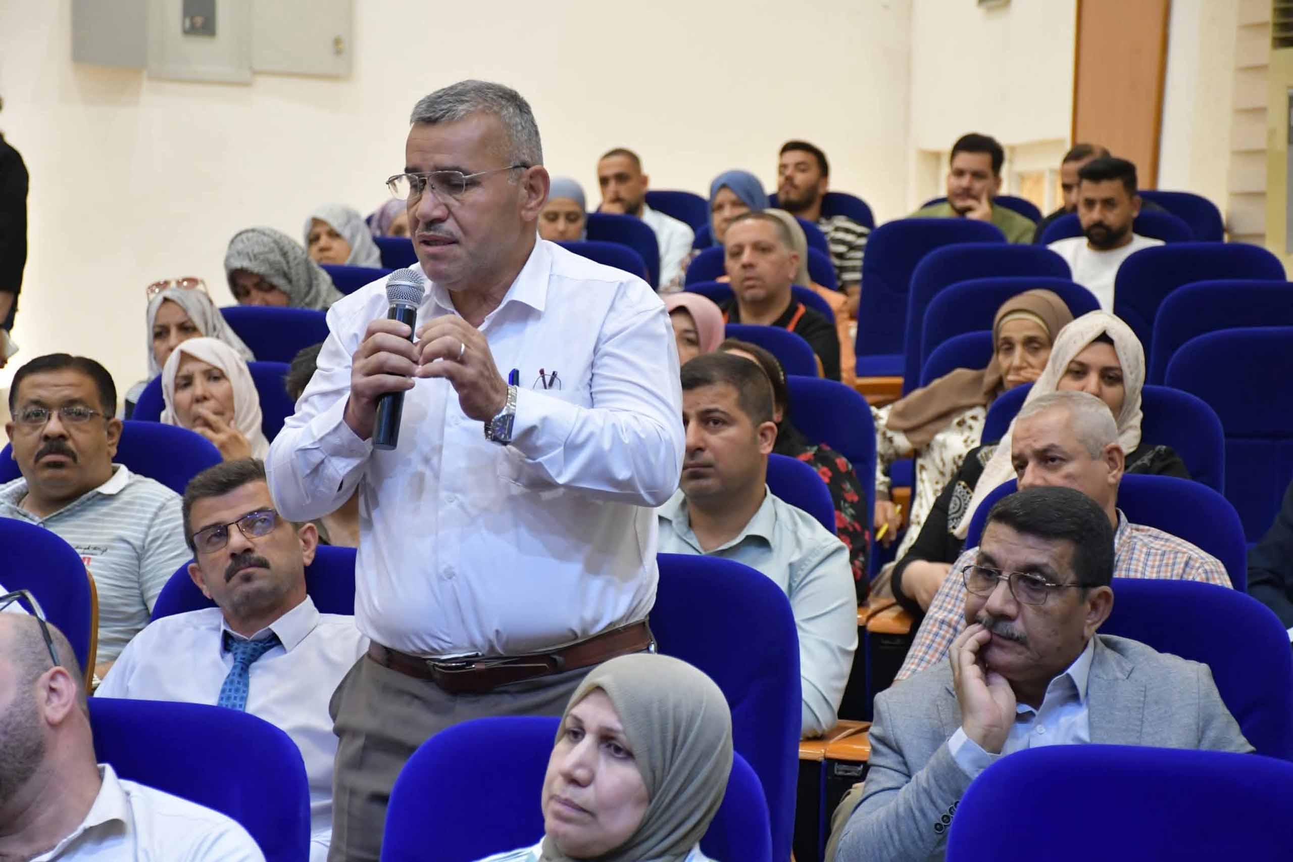 ضمن حرص عمادة كلية الطب البيطري على دعم طلبة الدراسات العليا وتذليل العقبات التي تواجههم في مسيرتهم العلمية، عقد السيد عميد الكلية الاستاذ الدكتور حميد علي كاظم لقاءً موسعاً مع طلبة الدراسات العليا وبحضور كل من الاستاذ الدكتورة عروبة محمد سعيد معاون العميد للشؤون العلمية والطلبة والاستاذ الدكتور محمد ثابت معاون العميد للشؤون الادارية ورؤساء الفروع العلمية . واستمع السيد العميد خلال اللقاء إلى ملاحظات ومقترحات الطلبة المتعلقة بمراحل البحث الدراسة، مؤكداً حرص الكلية على توفير بيئة أكاديمية ملائمة تسهم في إنجاز البحوث العلمية الرصينة التي تخدم المجتمع والقطاع البيطري. كما وجّه العميد بضرورة الالتزام بالضوابط والتعليمات الخاصة بالدراسات العليا، مشيداً بالجهود التي يبذلها الأساتذة والمشرفون في متابعة طلبتهم، ومؤكداً أن أبواب العمادة مفتوحة أمام الجميع لمعالجة أي معوقات قد تواجههم. وفي ختام اللقاء، عبّر الطلبة عن شكرهم لعمادة الكلية على اهتمامها ودعمها المستمر لمسيرتهم العلمية .
