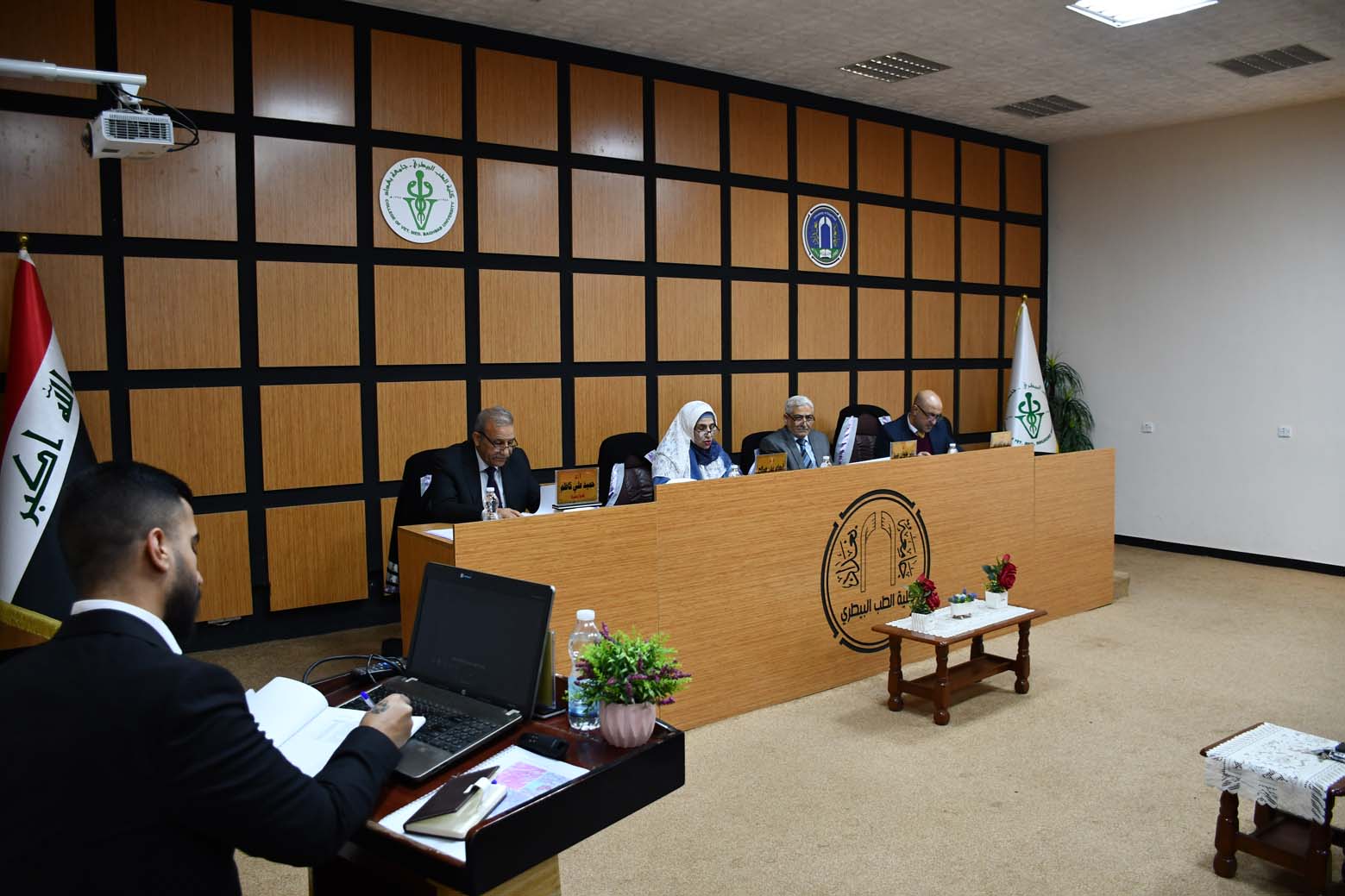 مناقشة الماجستير للطالب أمير عبد الكريم عبد ألامير. فرع الجراحة والتوليد البيطري : شهد فرع الجراحة والتوليد في كلية الطب البيطري / جامعة بغداد مناقشة رسالة الماجستير الموسومة (علاج اصابة العصب الوركي الناتجه عن سبب علاجي في الارنب) للطالب أميرعبد الكريم عبد ألامير.