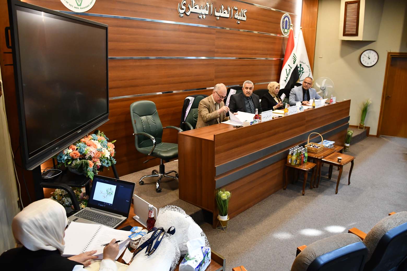 شهد فرع الأمراض وامراض الدواجن في كلية الطب البيطري / جامعة بغداد مناقشة رسالة الماجستير الموسومة (دراسة مرضية و جزيئية لعدوى الإشريكية القولونية غير أو-157 في ذكور الأرانب) للطالبة رقية فاضل صاحب.